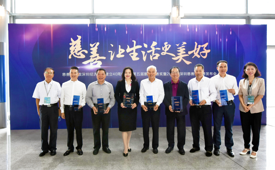 建藝集團(tuán)董事會(huì)主席劉海云(右五)獲“鵬城慈善捐贈(zèng)個(gè)人”獎(jiǎng)