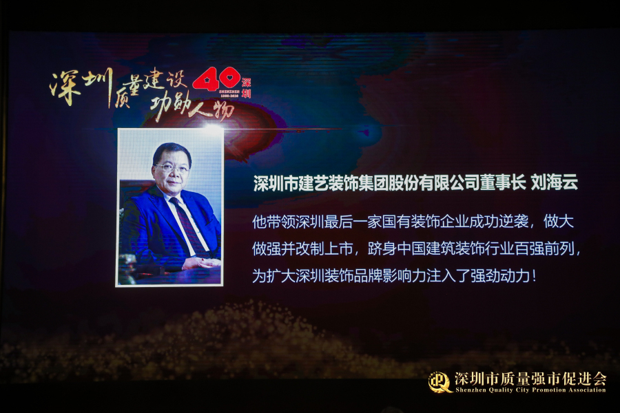 作為榮膺“功勛人物”的企業家之一,“深商風云人物”——劉海云主席長期以來深耕深圳質量建設。大會現場這樣評價劉海云主席:“他帶領深圳最后一家國有裝飾企業成功逆襲,做大做強并改制上市,躋身中國建筑裝飾行業百強前列,為擴大深圳裝飾品牌影響力注入了強勁動力。”