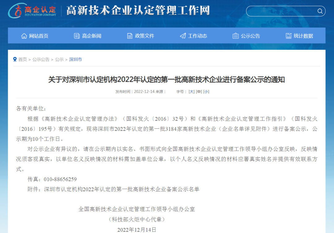 近日,全國高新技術企業認定管理工作領導小組辦公室公布了2022年認定的“高新技術企業”名單,建藝集團再次通過深圳市2022年度第一批“高新技術企業”認定。自2016年以來,我司連續7年榮獲國家“高新技術企業”稱號,充分體現出建藝集團多年來在人才引進培育、技術研發投入,完善科學管控等方面的有效實踐與豐碩成果,更是對集團在建筑領域持續探索精益求精,堅持創新驅動,推進高質量發展的認可。