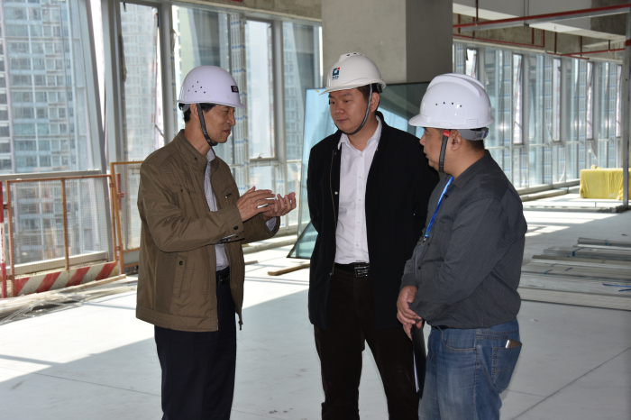 集團副總裁趙紂瑜(中)聽取現場人員介紹