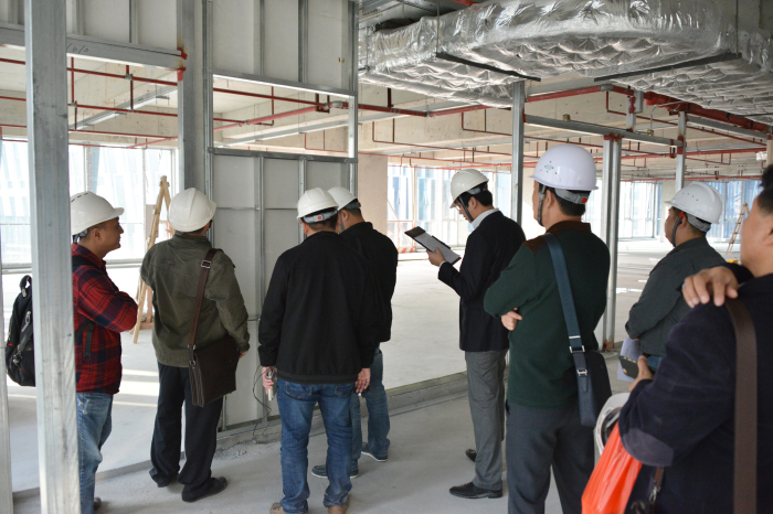 12月6日上午,“2017年度深圳市裝飾行業技能大賽——建藝集團木工和金屬工技能競賽”在深圳市賽西科技大廈拉開帷幕。建藝集團副總裁趙紂瑜、深圳市裝飾行業協會培訓中心副主任何煒烽、建藝集團人力資源部總經理王久奎、評審團的6位評委——建藝集團工程總監王晟、工程總監韓佛、工程三部總經理李衛鋒、工程一部副總經理左超華、工程一部副總經理宋祥龍、工程管理中心熊順生及三十余名技術工人共同參加本次技能競賽。