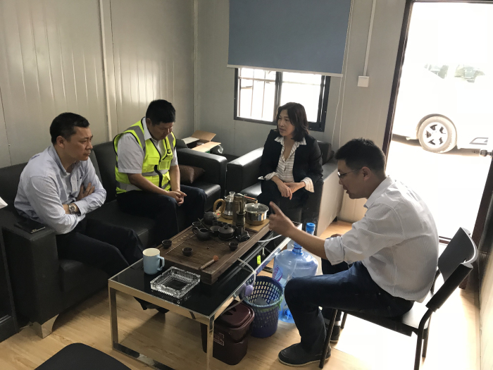 劉慶云執行副總裁(左一)等領導在項目部交流