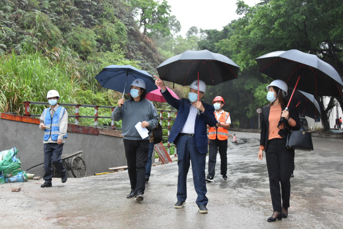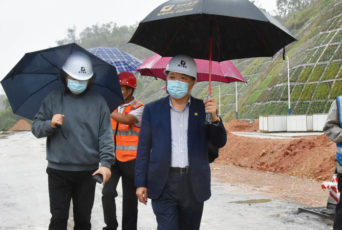 建藝集團董事會主席劉海云一行冒雨親臨下坪場市政重點生態修復園建項目檢查工作