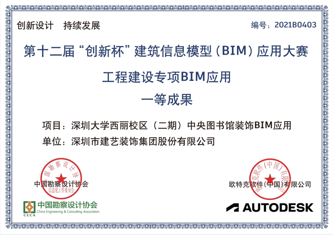 建藝集團利用BIM技術提高精細化建造水平,建造質量精品工程,通過BIM模型進行深化設計,優化施工方案、施工節點、材料排版,利用模型生成精裝修深化排布圖紙,指導現場施工,同時基于BIM模型,對方案安全性、合理性、可建造性等方面進行審核,做到提前更正,降低變更風險,提高工程質量。在提升提高工作效率方面更是通過深圳市建筑工務署BIM協同管理平臺進行日常維護和管理,使各項目參與方可在同一模型上進行多方位立體溝通,提高信息化管理水平,提供施工效率。憑借創新的BIM應用,項目榮獲了第十二屆“創新杯”建筑信息模型(BIM)應用大賽工程建設專項BIM應用一等成果的榮譽。