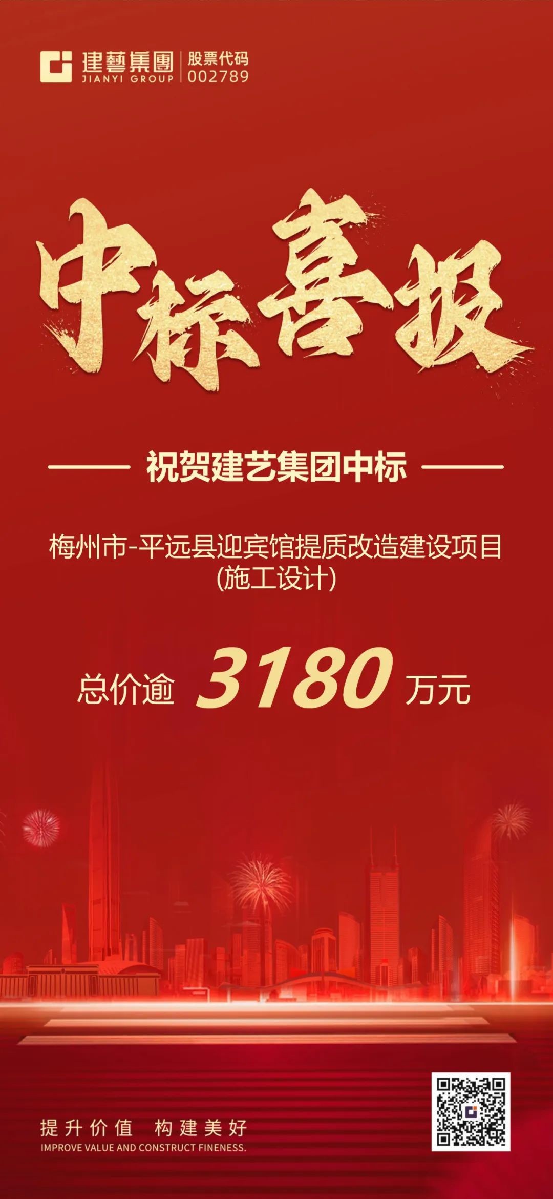 近期,深圳市建藝裝飾集團股份有限公司及旗下子公司廣東建星建造集團有限公司、廣東粵明綠能科技有限公司中標捷報頻傳,接連中標多項項目總價逾1.03億元。