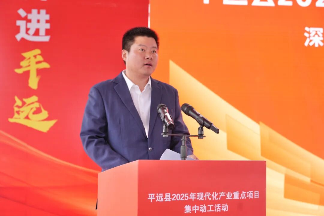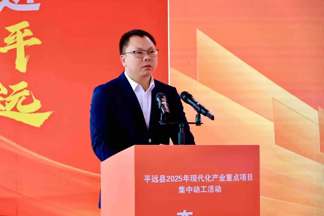 平遠縣委書記周小勇發表致辭,此次集中動工的6個項目,涵蓋了新型建材、智慧儲能、裝備制造、精深加工等多個先進制造領域,高度契合平遠發展需求,將為平遠點燃發展新引擎,為梅州蘇區振興發展增添新動能。