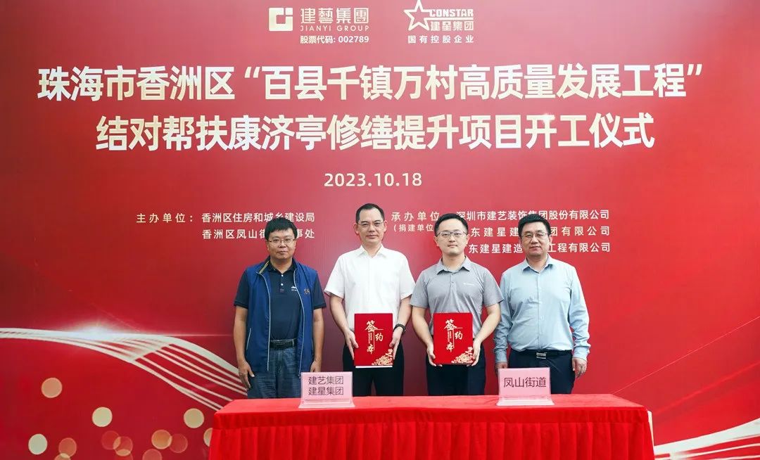 今年以來,廣東全面吹響了“百縣千鎮萬村高質量發展工程”奮進號角,珠海市委市政府全面響應、深入實施,積極動員全市上下快速投入 “百千萬工程”樣板打造,描繪城鄉區域協調發展“新藍圖”。10月18日,建藝集團與旗下控股子公司建星集團結對幫扶“康濟亭修繕提升工程”開工儀式在南溪村舉行。