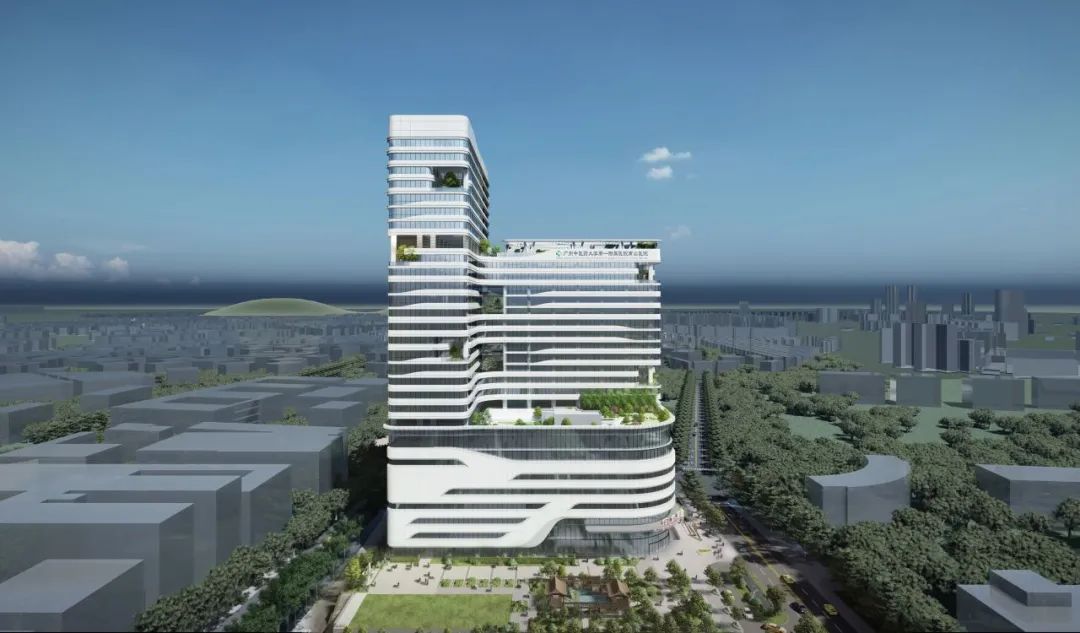 項目主要有1棟塔樓及其裙樓組成,其中塔樓高區(135.8m)、地區(101.4m),功能為住院、教研教學、行政辦公、裙樓(45.3m)為門診醫技功能。