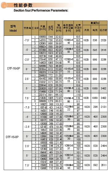 | DTF系列軸流式風機運用國際最新航空航天氣動設計技術,采用國際先進加工設備,保證了產品的優良性能。此類風機設有防喘振裝置,有效避免了風機在非設計工況下運行或多臺風機并聯安裝單臺使用時可能產生失速運行出現的喘振現象,無須再裝喘振報警裝置。 DTF系列風機又分為三類,即DTF(H)型排熱風機(地鐵稱UPE/OTE風機)、DTF(S)型消防排煙風機、DTF(V)型通風排風機。其中DTF(H)型從10~24#有10種機號,DTF(S)型從8~24#有12種機號,DTF(V)從5~28#有18種機號。 |