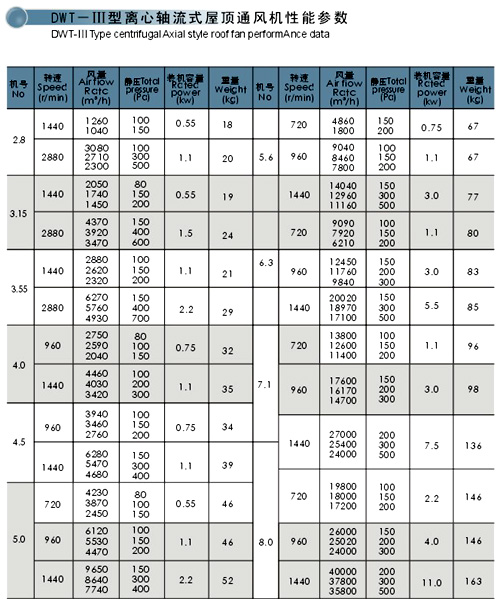 | DWT系列屋頂式通風(fēng)機是國家經(jīng)貿(mào)委“雙加工程”的大型技改項目,已列入國家級“星火”計劃,獲得國家實用性新型專利。本系列風(fēng)機具有規(guī)格形式多、應(yīng)用范圍廣、效率高、噪聲低、質(zhì)輕、高強度、耐腐蝕、運轉(zhuǎn)平穩(wěn)、壽命長、外型美觀等眾多優(yōu)點。 該類風(fēng)機廣泛應(yīng)用于發(fā)電廠、化工廠、橡膠廠、機械制造等車間和高級民用建筑的送、排風(fēng);如:廣州電廠、廣東惠州電廠、廣東中山電廠、廣東佛山電廠、廣東汕頭電廠、廣東陽江電廠、深圳馬灣電廠、大亞灣核電廠、珠海發(fā)電廠、四川綿陽電廠,孟加拉國吉大港電廠等三十多個國家發(fā)電廠。 本系列屋頂風(fēng)機共分三大類:①軸流式屋頂風(fēng)機(DWT-I),直徑自Φ300-Φ2400mm,共十七種機號;②離心式屋頂風(fēng)機(DWT-Ⅱ),有Φ300-Φ1000 mm九種機號;③混流式屋頂風(fēng)機(DWT-Ⅲ),直徑自Φ280-Φ800 mm,共十種機號,還可根據(jù)用戶需要提供其它機號風(fēng)機。 |