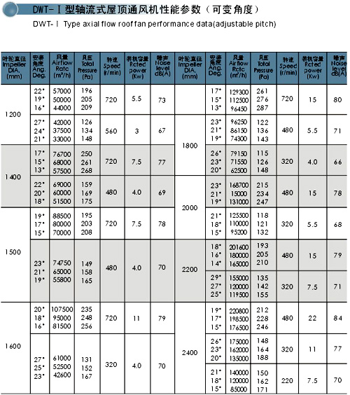 | DWT系列屋頂式通風機是國家經貿委“雙加工程”的大型技改項目,已列入國家級“星火”計劃,獲得國家實用性新型專利。本系列風機具有規格形式多、應用范圍廣、效率高、噪聲低、質輕、高強度、耐腐蝕、運轉平穩、壽命長、外型美觀等眾多優點。 該類風機廣泛應用于發電廠、化工廠、橡膠廠、機械制造等車間和高級民用建筑的送、排風;如:廣州電廠、廣東惠州電廠、廣東中山電廠、廣東佛山電廠、廣東汕頭電廠、廣東陽江電廠、深圳馬灣電廠、大亞灣核電廠、珠海發電廠、四川綿陽電廠,孟加拉國吉大港電廠等三十多個國家發電廠。 本系列屋頂風機共分三大類:①軸流式屋頂風機(DWT-I),直徑自Φ300-Φ2400mm,共十七種機號;②離心式屋頂風機(DWT-Ⅱ),有Φ300-Φ1000 mm九種機號;③混流式屋頂風機(DWT-Ⅲ),直徑自Φ280-Φ800 mm,共十種機號,還可根據用戶需要提供其它機號風機。 |
